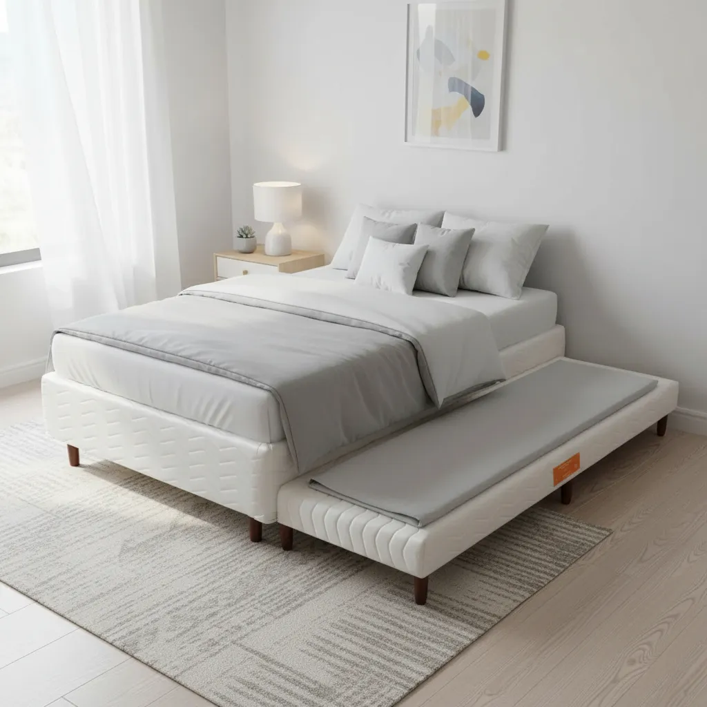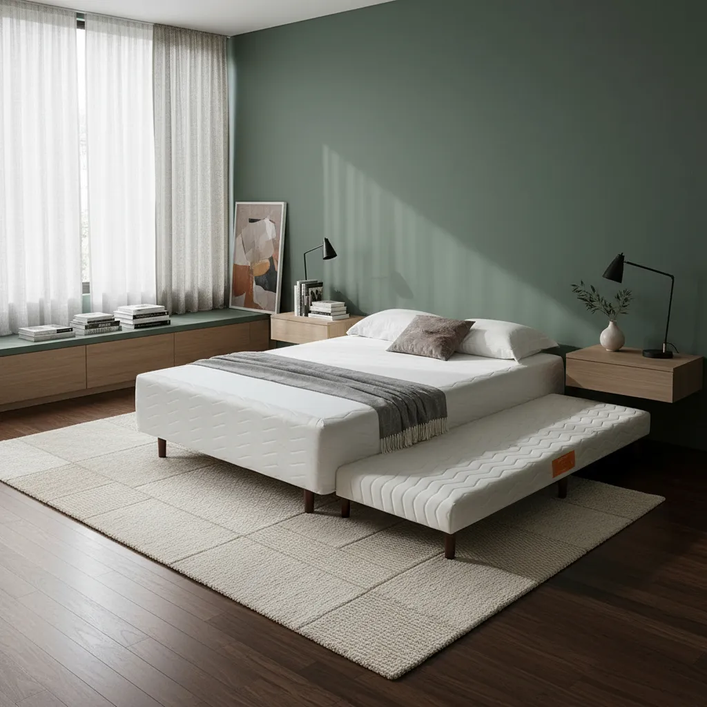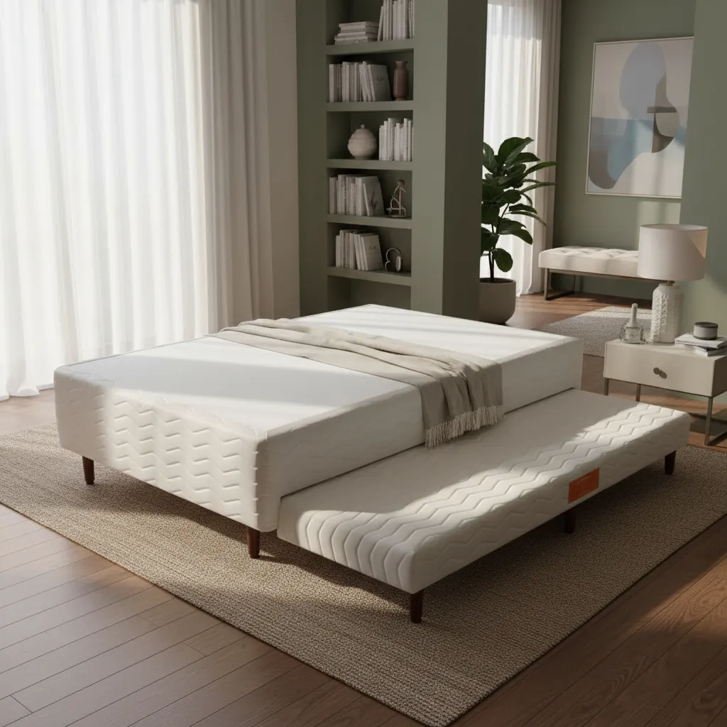 Transforme seu espaço com a praticidade e conforto da Base Box com Cama Auxiliar Bibox Orthocrin. Produto 2 em 1.