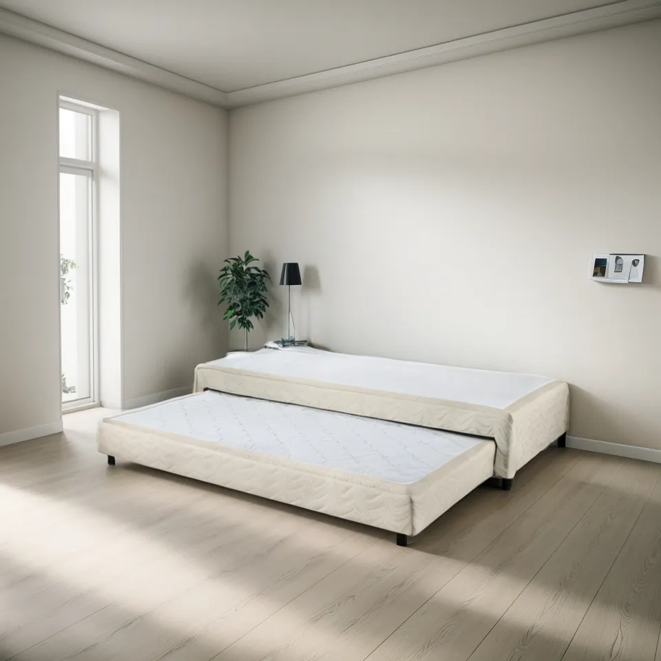 Você só precisa puxar a parte de baixo que já proporciona um novo colchão!! Ideal para quem busca funcionalidade sem abrir mão do estilo, este conjunto é perfeito para quartos compactos, visitas inesperadas ou famílias em crescimento. Base Box com Cama Auxiliar Bibox Orthocrin Bege – Solteiro 88x188x26 Acabamento Nobre: Revestido com espuma e tecido. Estrutura Sustentável: Construída com 100% de madeira reflorestada de eucalipto, nossa base promove a preservação ambiental enquanto oferece durabilidade e resistência. Suporte de Peso: Desenvolvido para aguentar até 100kg por pessoa, assegurando estabilidade e conforto para todos os usuários Cama auxiliar: camada de conforto espuma D28. Altura:12cm + pés de madeira.