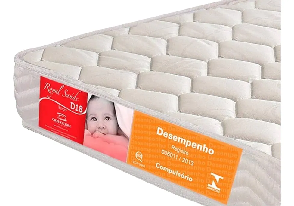 O colchão berço royal saude D18 é ideal para recém-nascidos e crianças de até 3 anos.