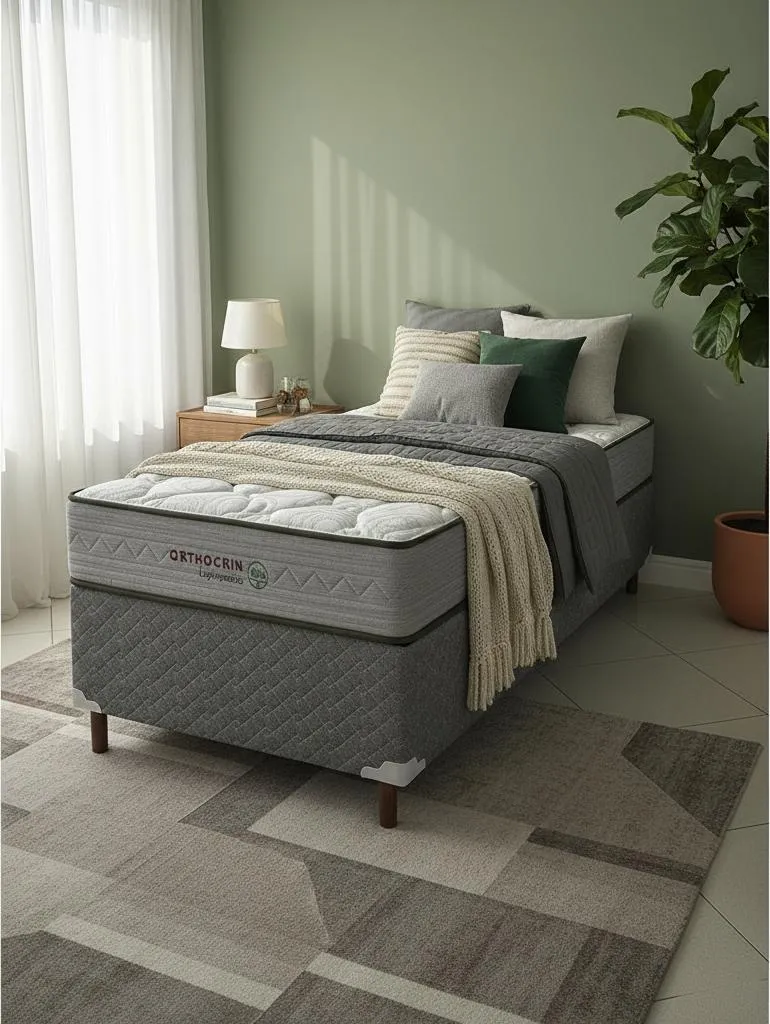 Este Anuncio é de 1 Colchão de Solteiro Orthocrin 88x188x25 + Cama Box Cinza Solteiro Paropas.