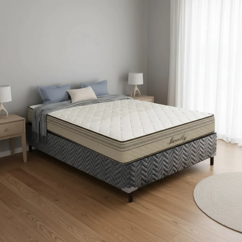 O Marcelly é um colchão da linha Orthomedic e de molas ensacadas individualmente (maior número de molas por m²). CARACTERÍSTICAS Espuma Base: AG D80 Utiliza EPS na sua estrutura – estabiliza o molejo. Biotipo: 100 kg Conforto: Firme-Medio Uniface DIFERENCIAIS Matelassê: Bordado soft localizado em malha. Espuma: Selada e certificada pelo InMetro. Lateral : Lateral em suede bege com ribbon duplo. Tecido do box: Bege 3256. Pillow: Costura Ribbon