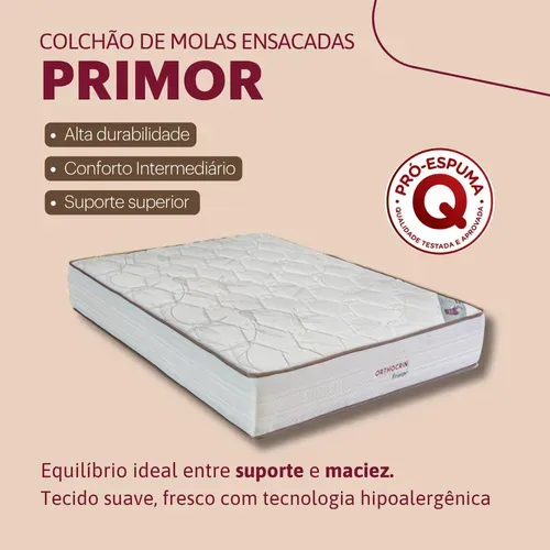 Certificações: Colchão de molas ensacadas Orthocrin Primor, selo Pró-Espuma que garante a qualidade da espuma.