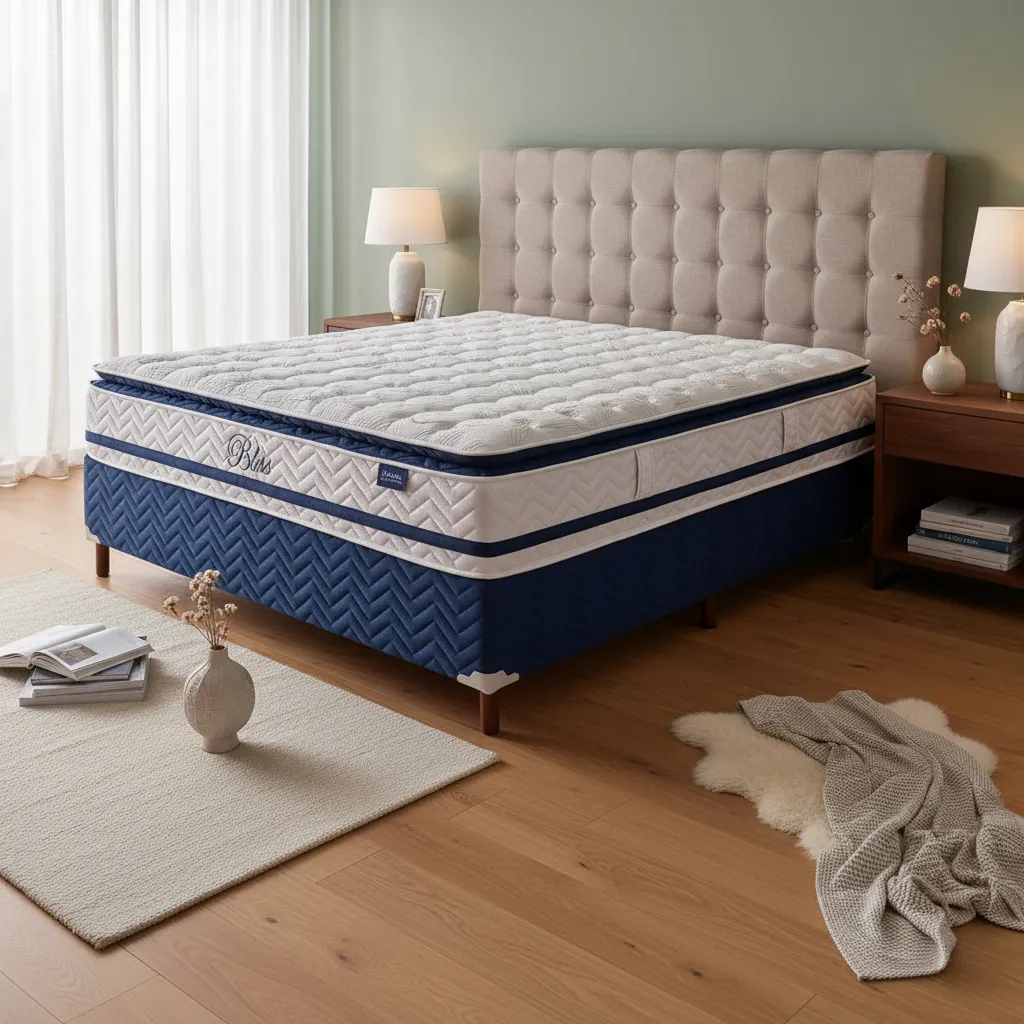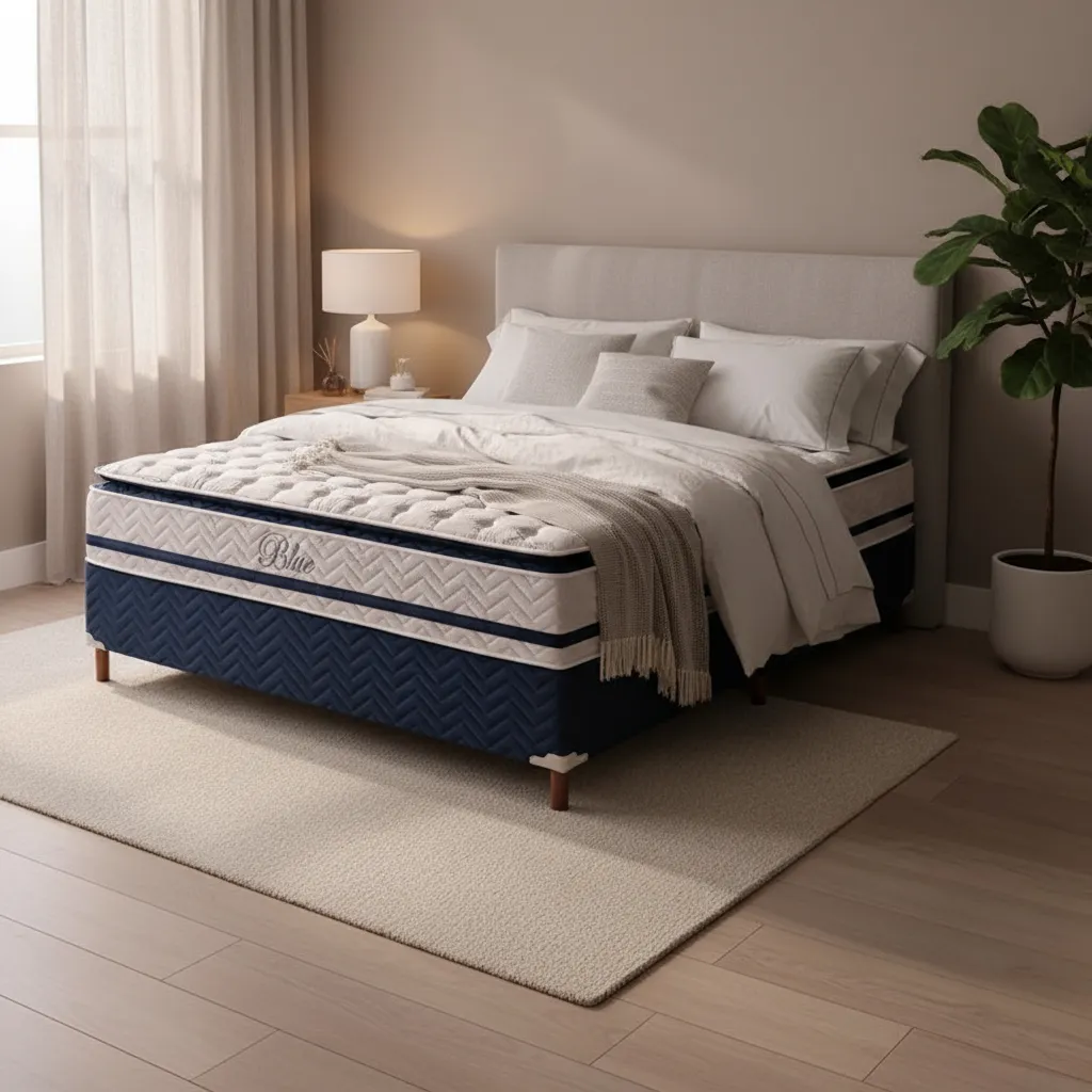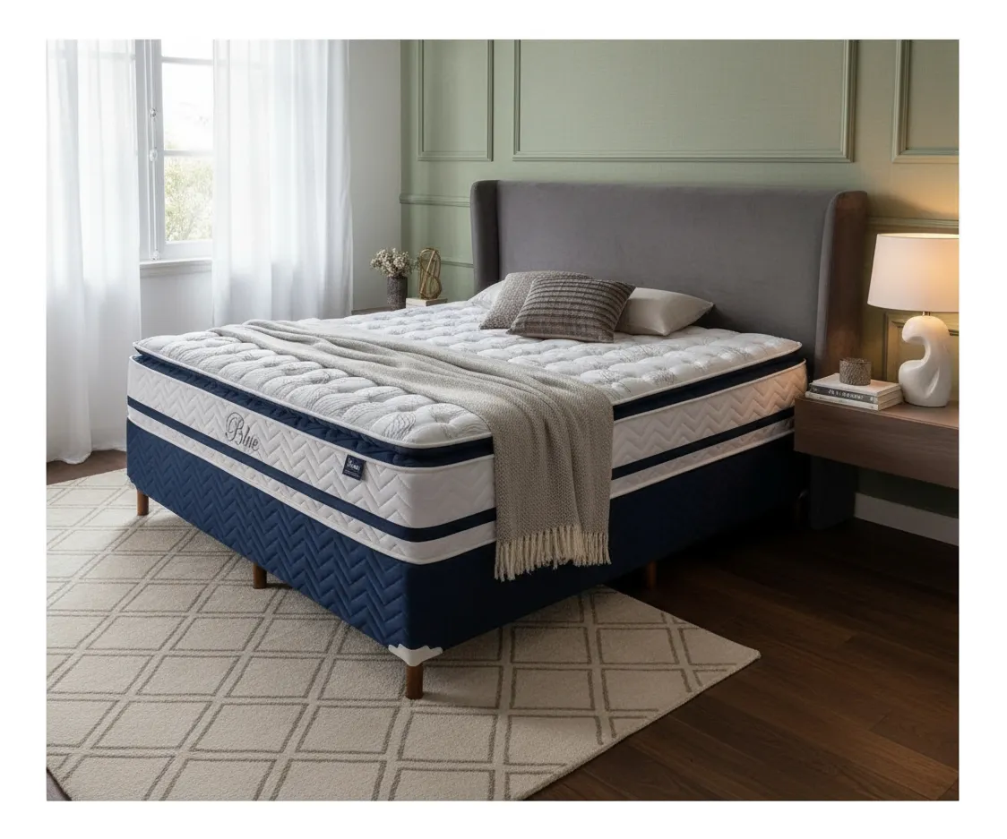 Esse anuncio e de 1 Colchão molas ensacadas na medida Casal + Box Casal Cor Azul .