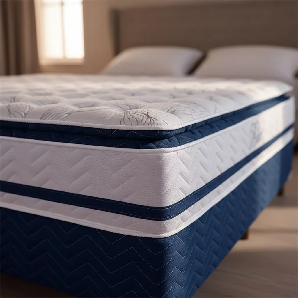 O Blue é um colchão da linha Orthomedic e de molas ensacadas individualmente (maior número de molas por m²). CARACTERÍSTICAS Espuma Base: HR 33 + AG D80 Utiliza EPS na sua estrutura – estabiliza o molejo. Biotipo: 120 kg Conforto: Firme Uniface DIFERENCIAIS Matelassê: Bordado localizado em tecido Malha. Espuma: Selada e certificada pelo InMetro. Lateral : Rústico branco, Suede azul e fitilhos de algodão. Pillow: Pastel em suede Ribbon