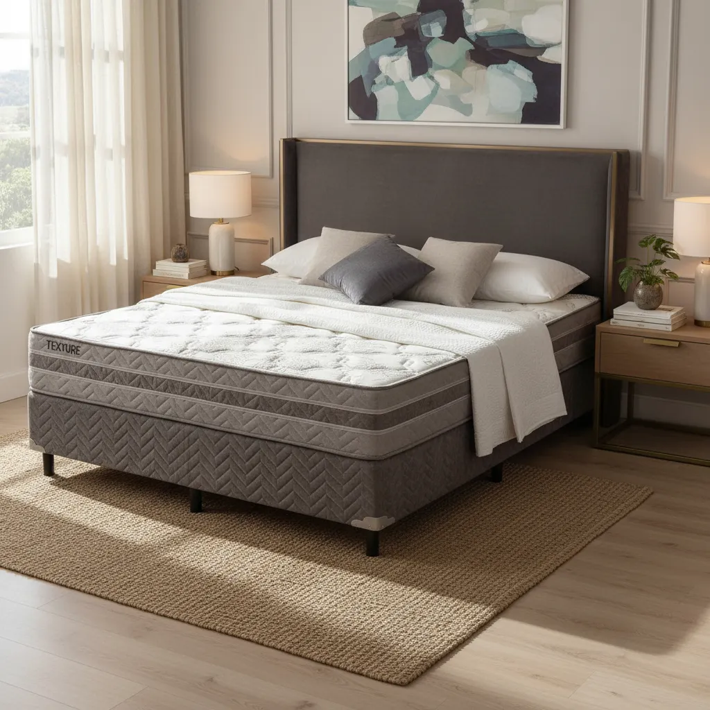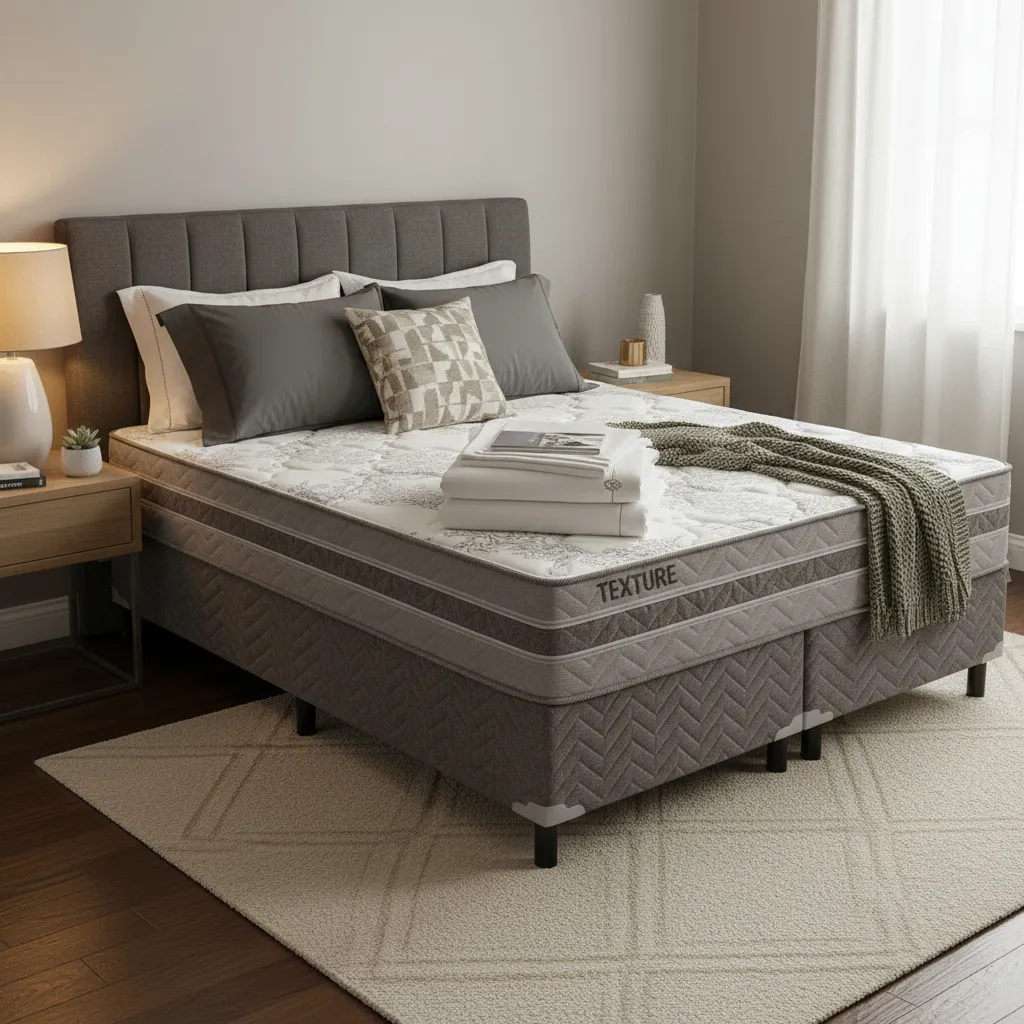 Este Anuncio é de Colchão Molas Ensacadas Texture 193x203x30 King Size + Cama Box King Size 193x203x30 Paropas Cinza.