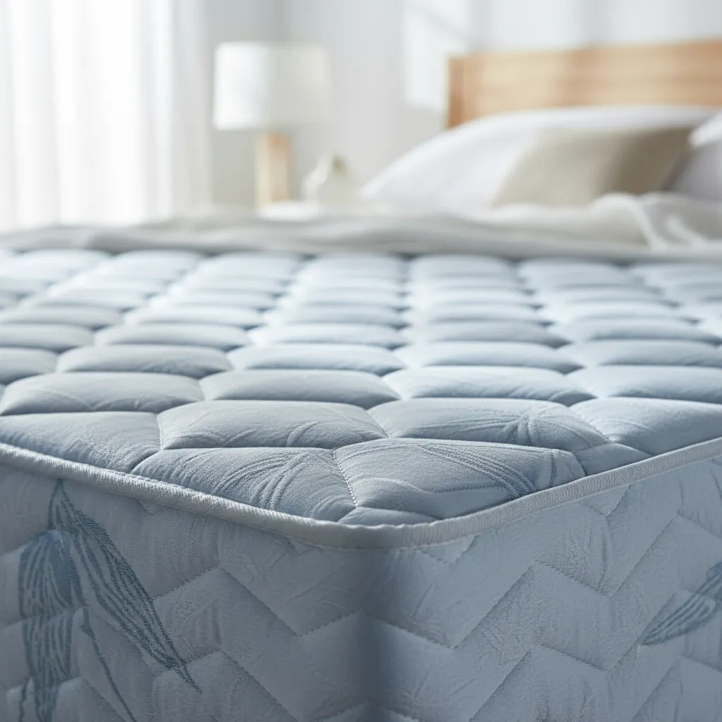 Espuma: Camada de espuma convencional, firme e resistente a deformações, proporcionando maior durabilidade e acomodando o corpo de maneira uniforme.